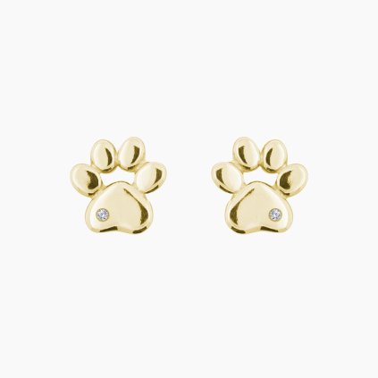 Hravé a blyštivé zlaté náušnice se zirkony, ve tvaru psích / kočičích tlapek, s pohodlným zapínáním na klapku.