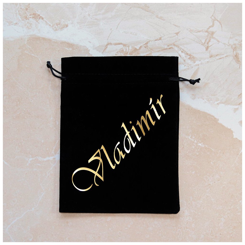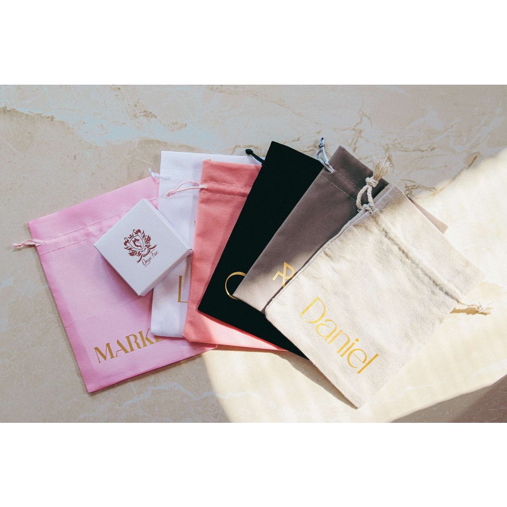 Jedinečný personalizovaný pytlíček na šperky nebo jiné menší předměty. Pohodlně se do něj vejde krabička se šperky. Na pytlíček vám natiskneme jméno obdarované/obdarovaného, iniciály, nebo krátké věnování. Vybrat si můžete z hebkého sametu, lesklého saténu nebo přírodně laděného lnu. Na výběr máte i typ písma.