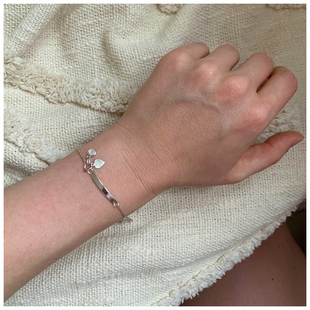 Stříbrný personalizovaný náramek Daphne se srdíčkem a kamínkem - s možností rytiny/ gravírujeme na přání.