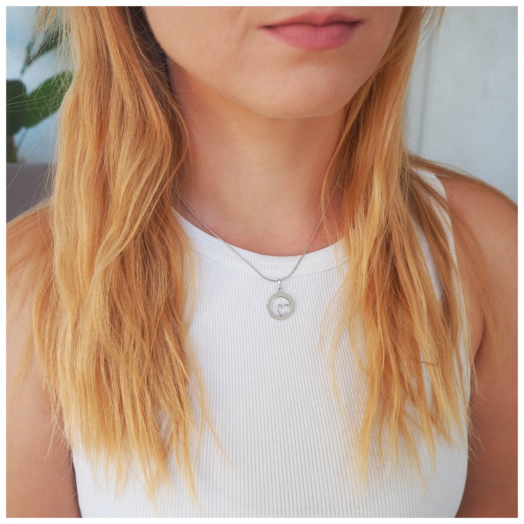 Stříbrný personalizovaný přívěsek kruh se srdíčkem.