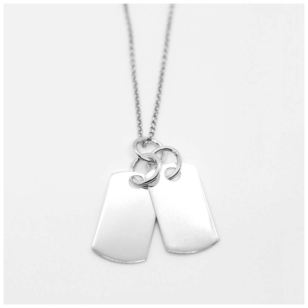 Stříbrný přívěsek se dvěma destičkami/ vojenskými známkami.
