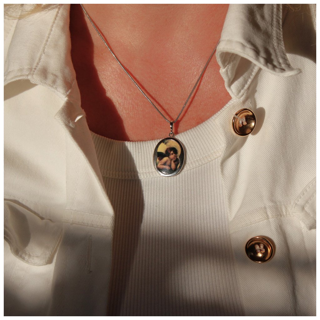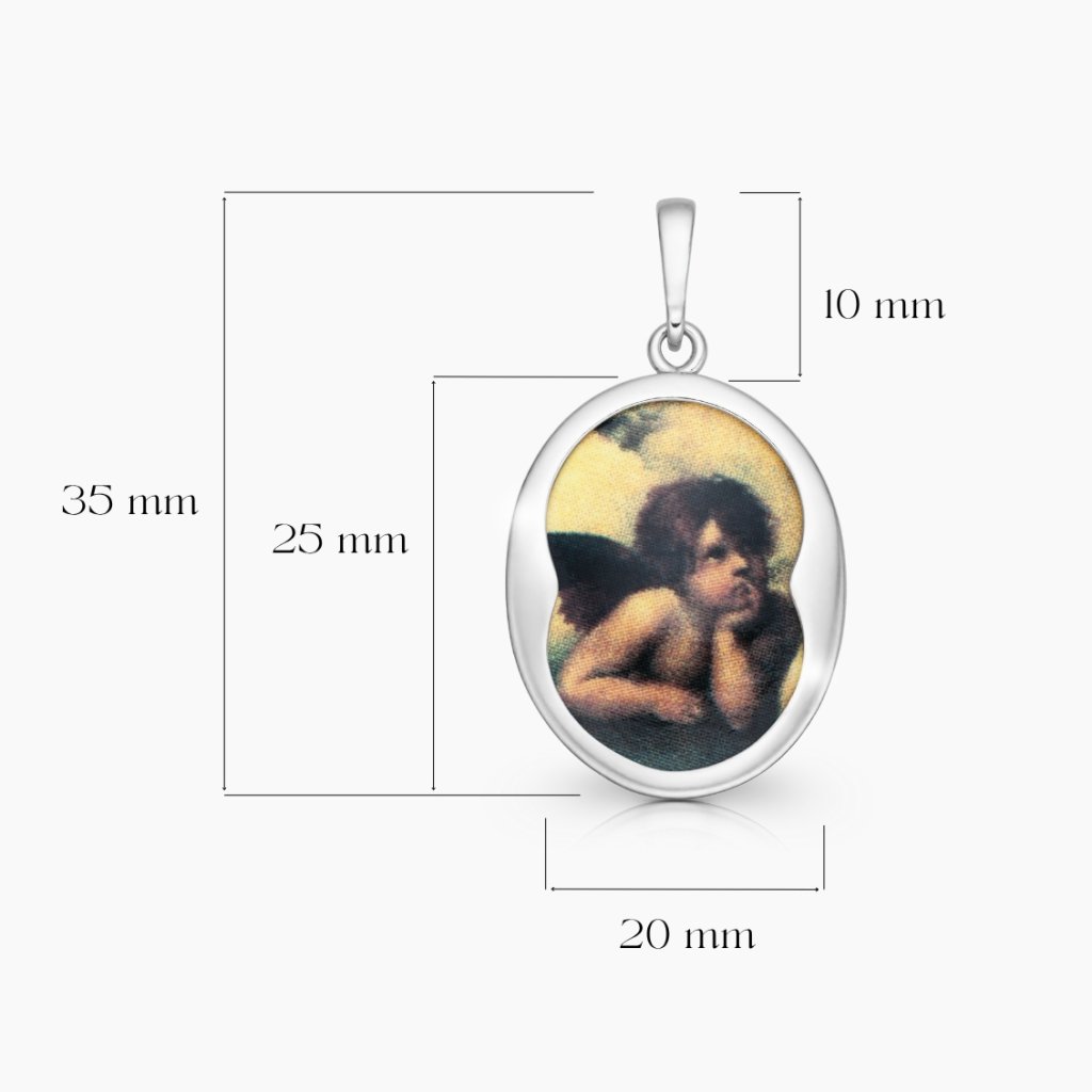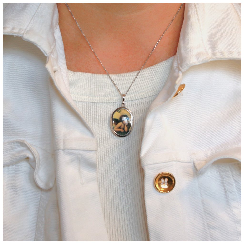Medailonek je zasazený do elegantního rámečku ze šterlingového stříbra naší výroby.