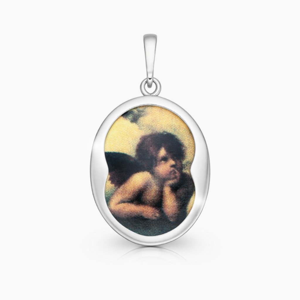 Oboustranný stříbrný přívěsek - medailonek – andělíček.