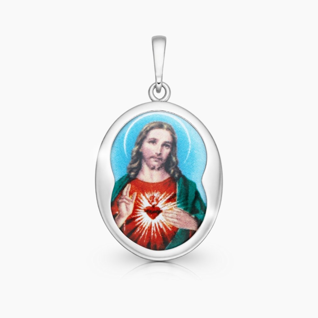 Stříbrný přívěsek medailonek - Ježíš zářící srdce