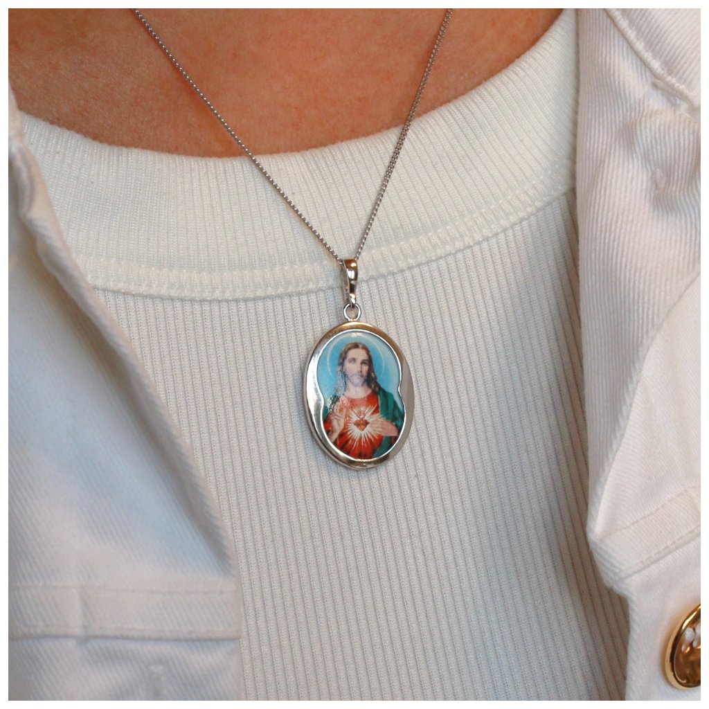 Oboustranný stříbrný přívěsek - medailonek – Ježíš zářící srdce.