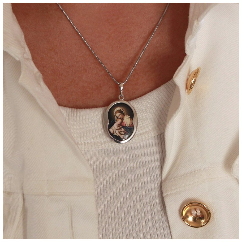 Stříbrný přívěsek medailonek - Madonna col bambino dormiente