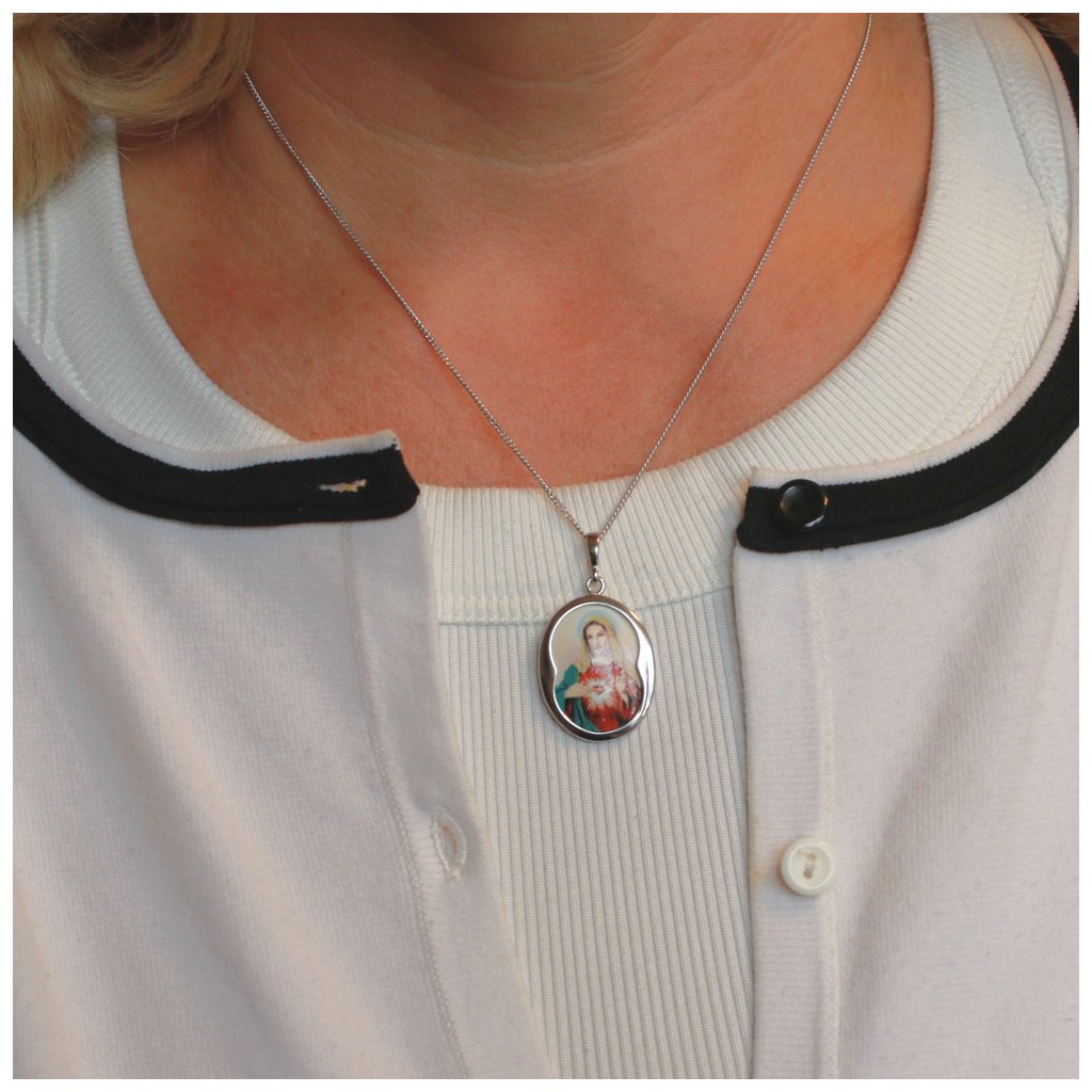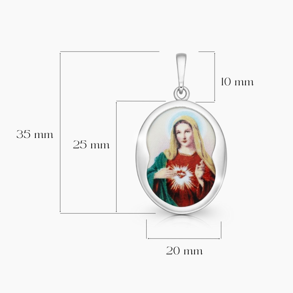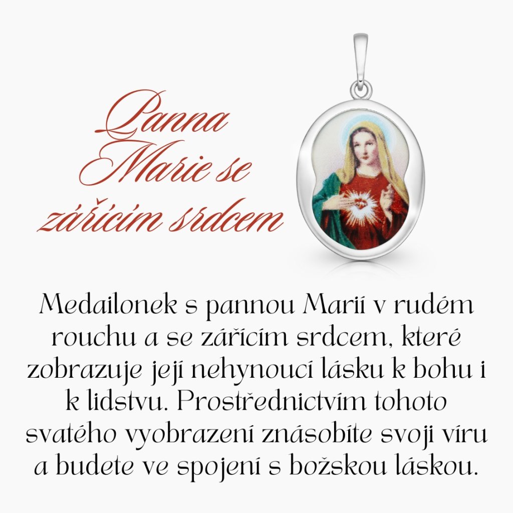 Medailonek s pannou Marií v rudém rouchu a se zářícím srdcem, které zobrazuje její nehynoucí lásku k bohu i k lidstvu. Prostřednictvím tohoto svatého vyobrazení znásobíte svoji víru a budete ve spojení s božskou láskou.