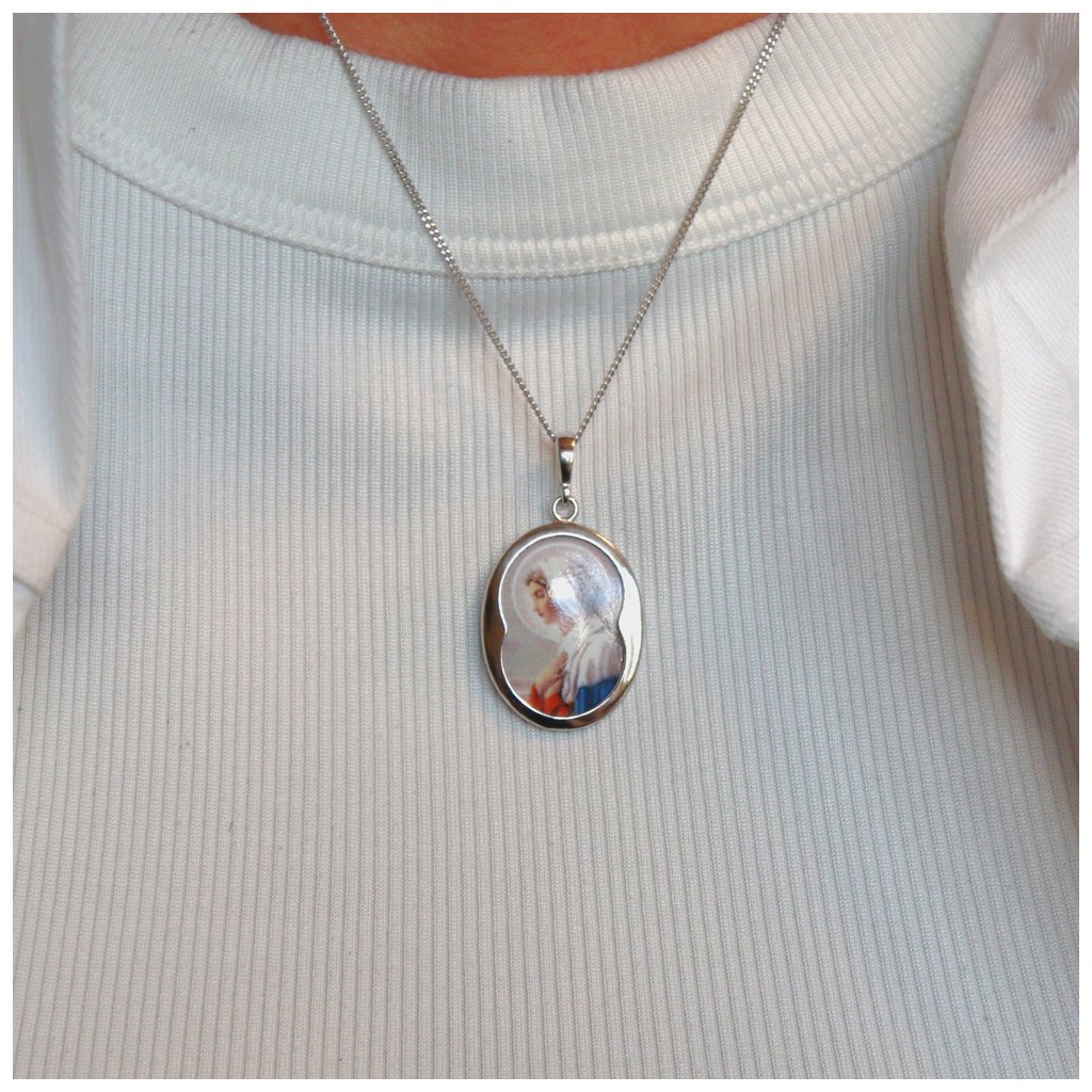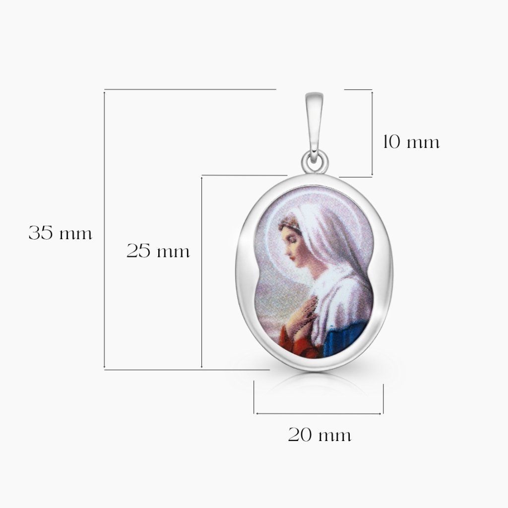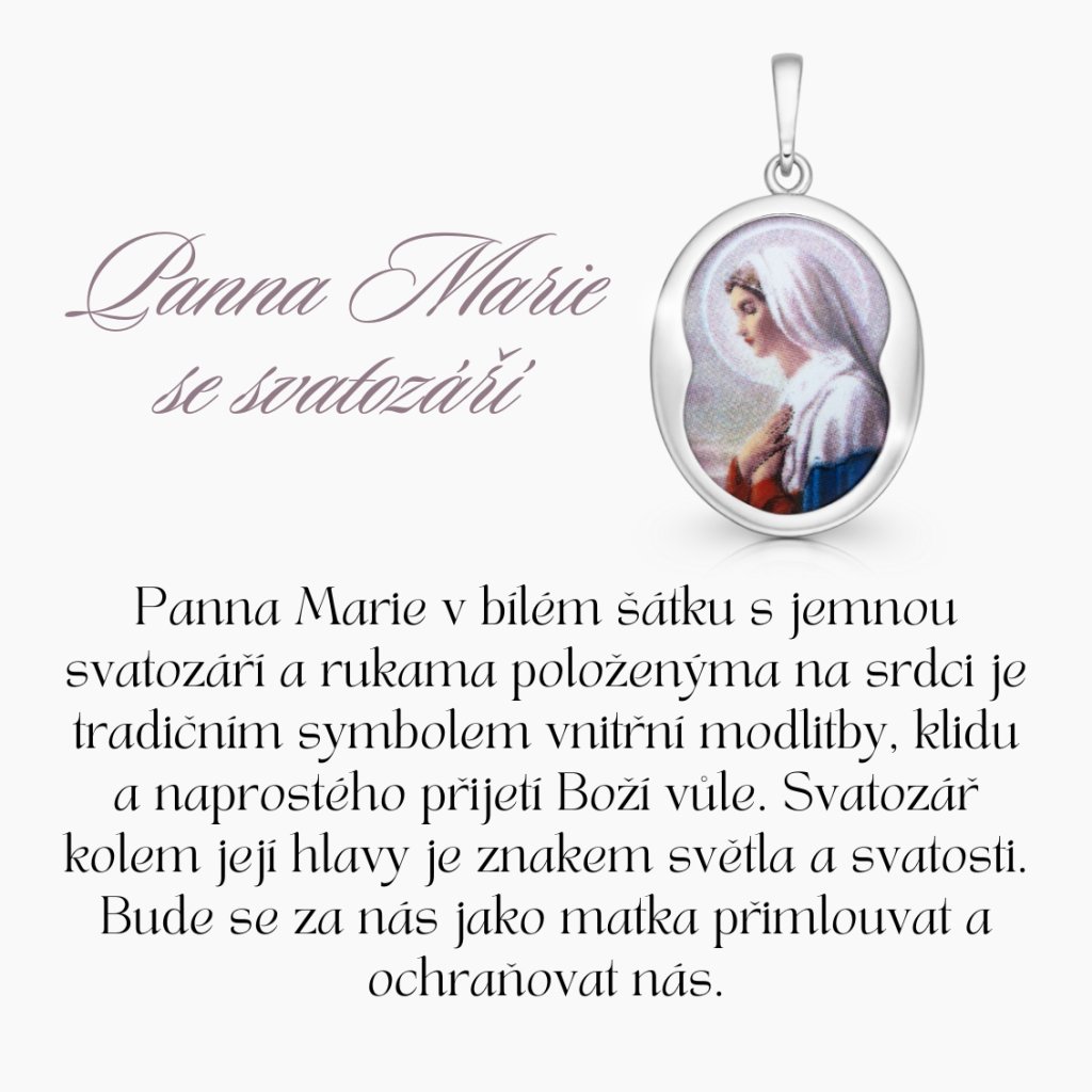 Stříbrný přívěsek medailonek - Panna Marie v bílém šátku se svatozáří