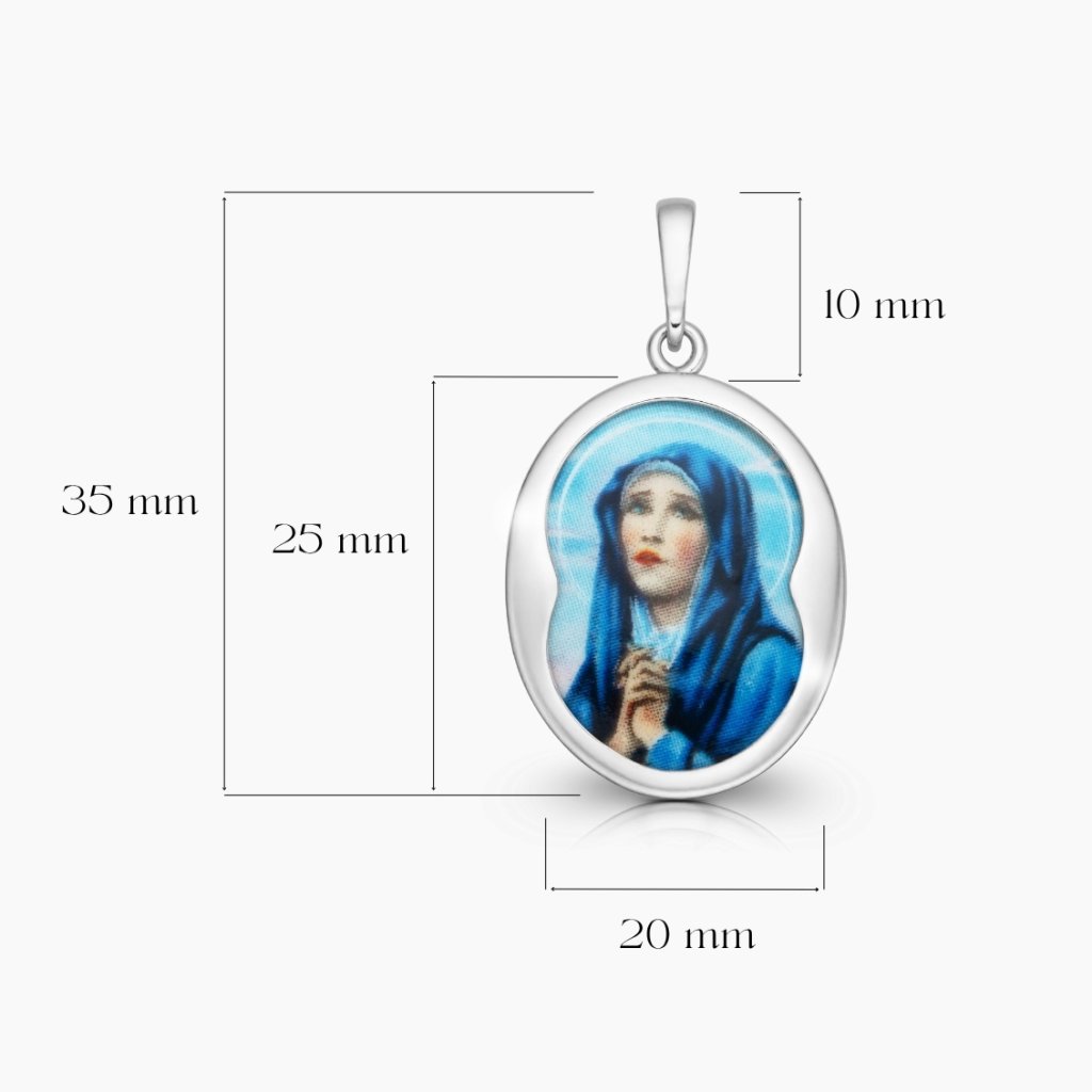 Stříbrný přívěsek medailonek - Panna Marie v modrém
