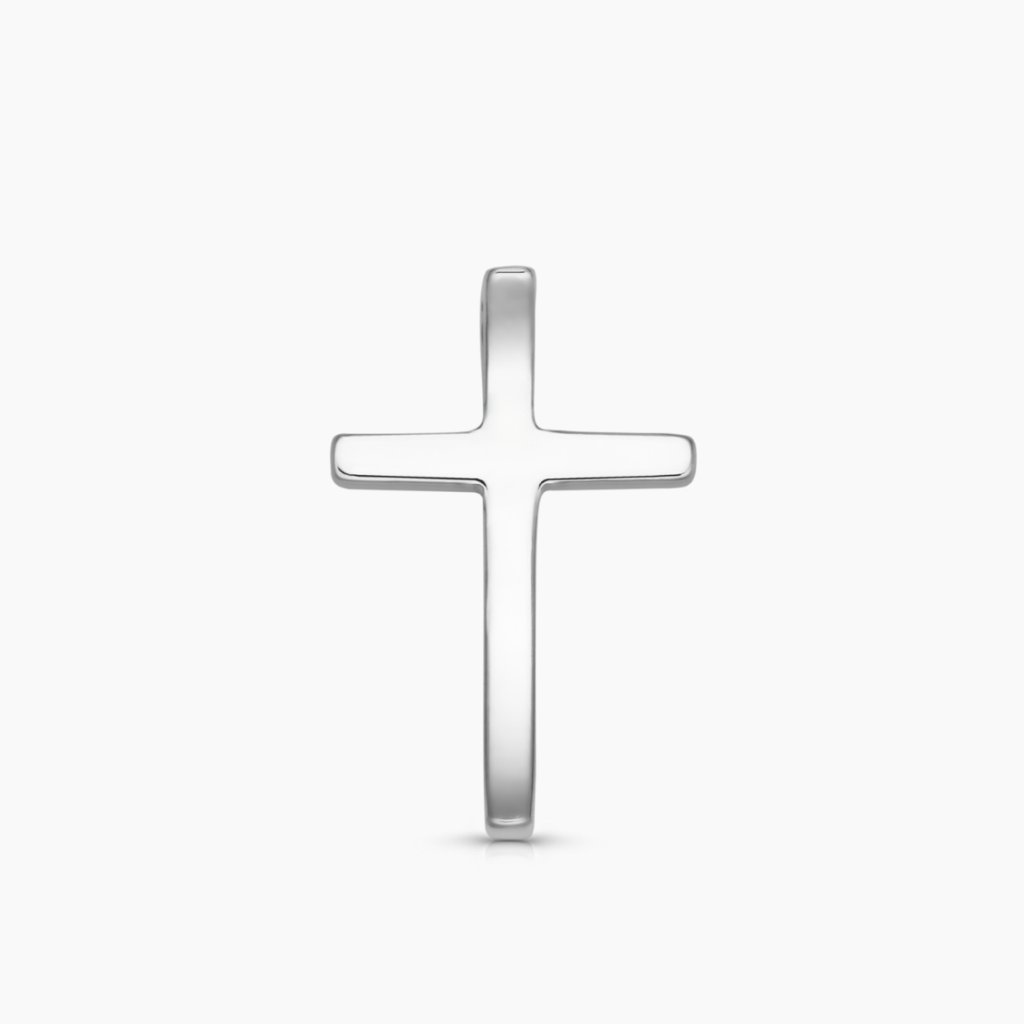 Moderní stříbrný přívěsek střední velikosti, hladký kříž sofistikovaného designu. Průvlek na řetízek je skrytý v horní špičce kříže pro modernější vzhled.
