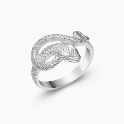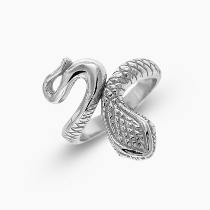 Stříbrný prsten had Shakti, elegantně stočený a zdobený ruční rytinou.