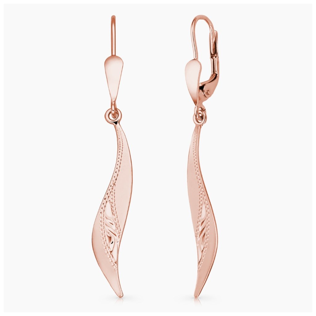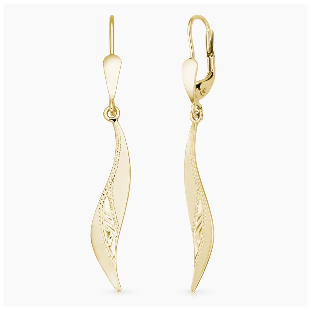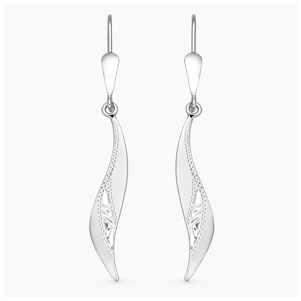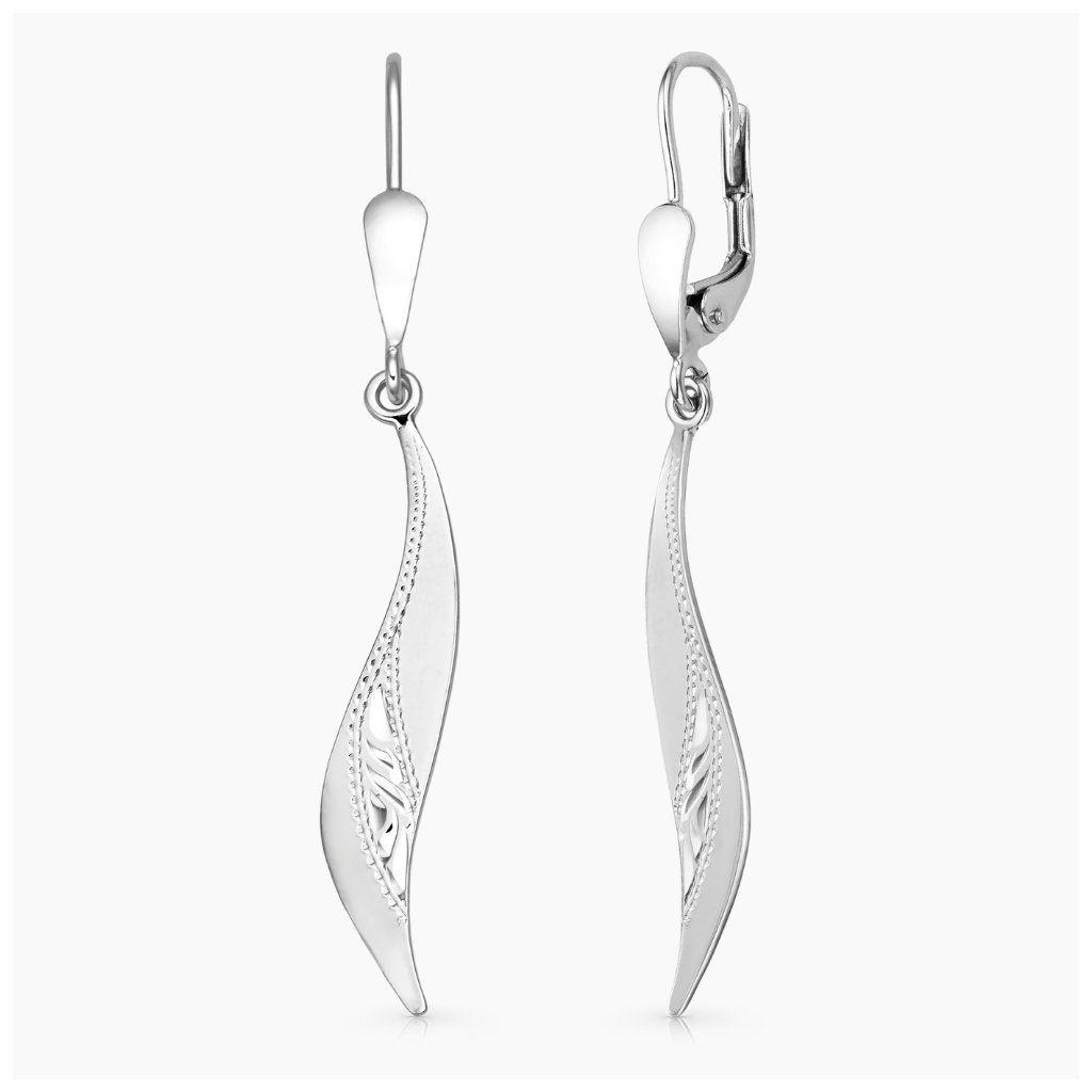 Velmi efektní, výrazné visací náušnice klasického nadčasového designu, zdobené ruční rytinou. S pohodlným zapínáním na klapku.