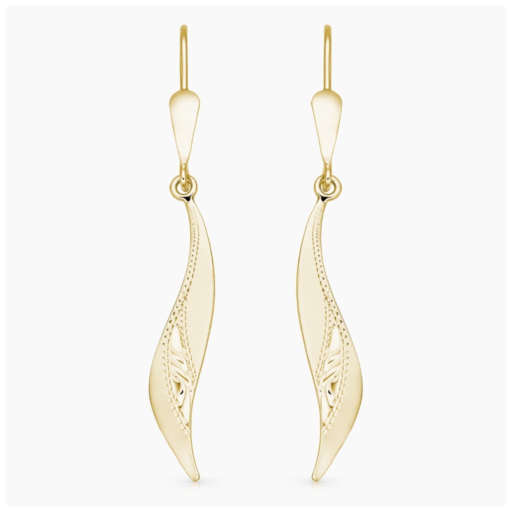Výrazné zlaté visací náušnice Arrow