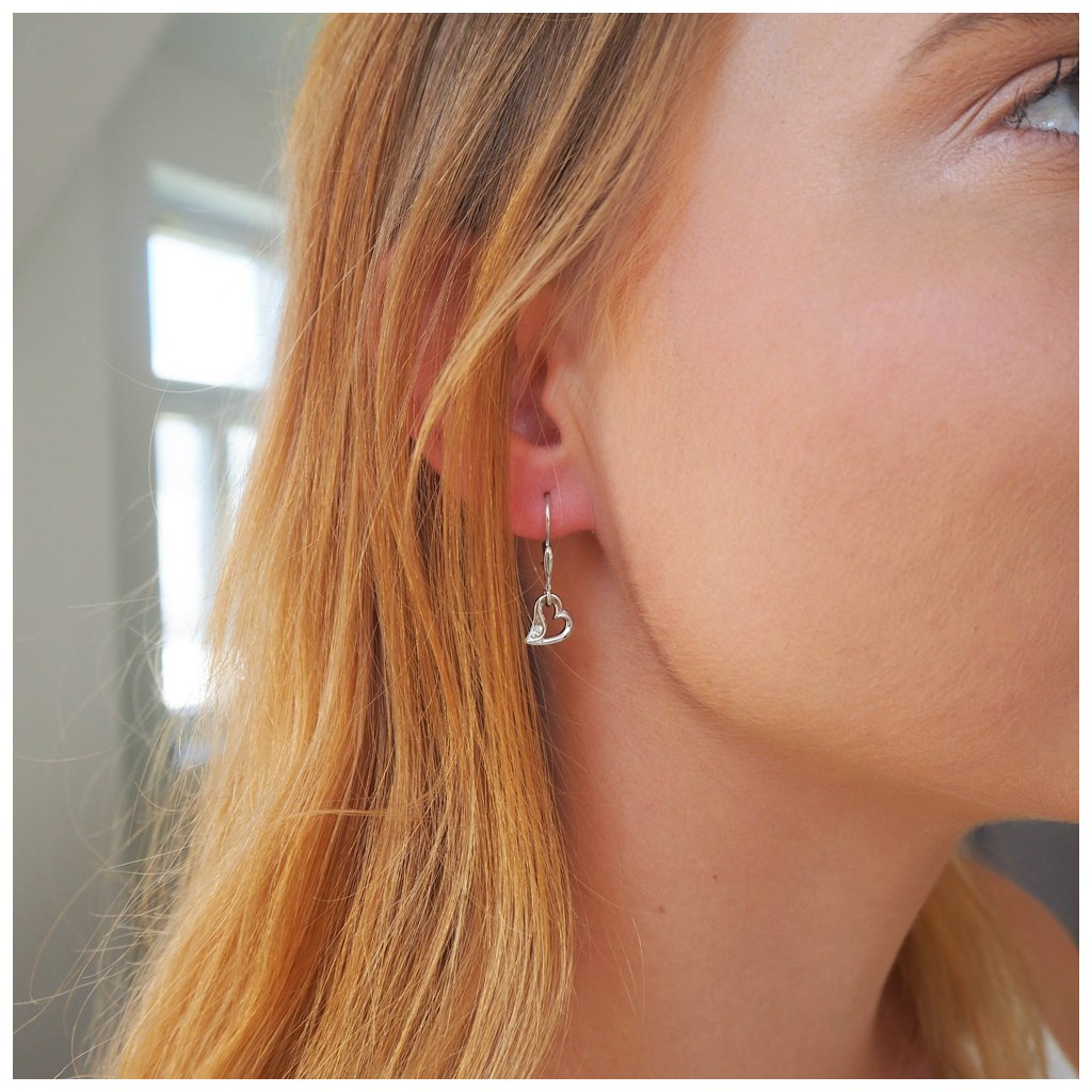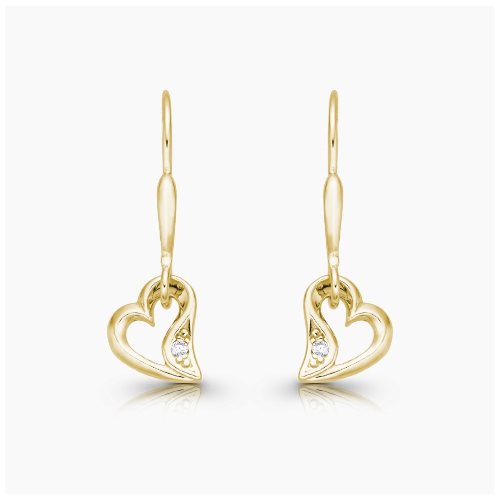 Jemné zlaté náušnice ve tvaru srdíčka – to jsou náušnice Adonis. Náušnice vyrobené ze 14K zlata jsou ozdobené zirkonem o průměru 1,5 mm.