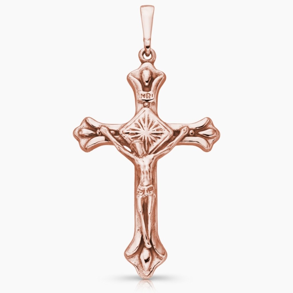 Větší, propracovaný luxusní unisexový přívěšek ve tvaru kříže s Kristem a Božím okem ze 14K zlata.