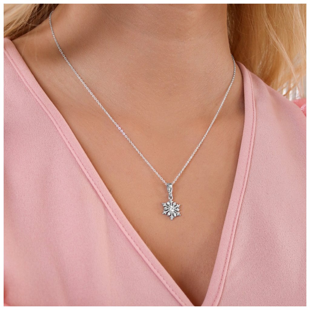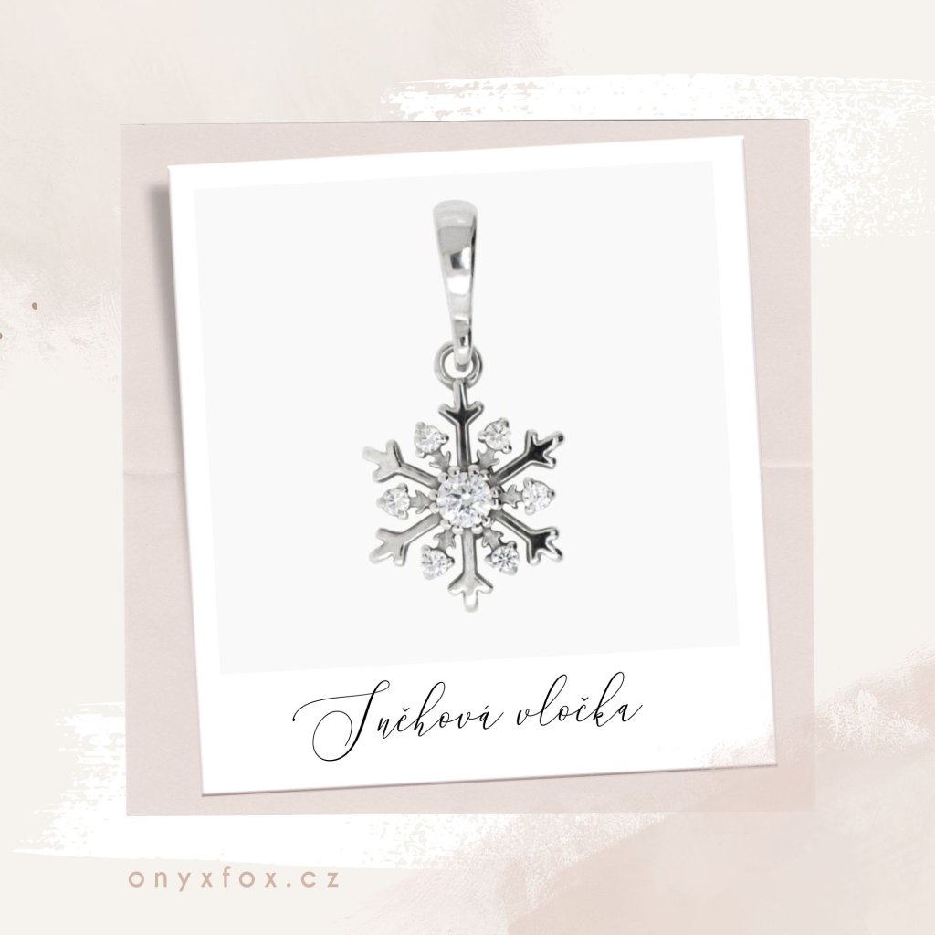 Éterický zlatý přívěsek ve tvaru sněhové vločky zdobený zirkony, které mu dodávají kouzelný třpyt. Ten nejlepší zimní šperk pro váš dekolt!